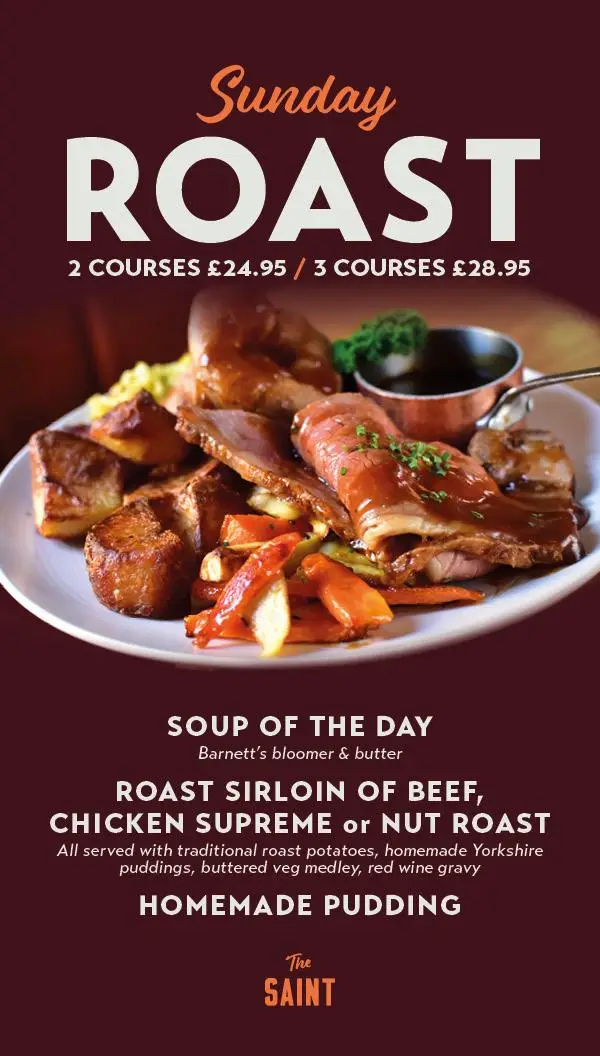 Choose from Roast Sirloin of Beef | Chicken Supreme | Nut Roast